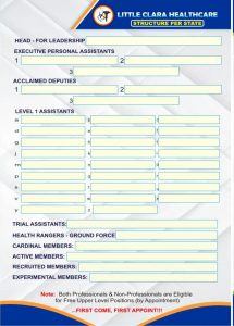 It consists of a 1 time “family” registration fee of ₦17,000 (regardless of family size… As long as they ALL live under the same roof) which is meant to cater for the necessary medical materials used in the family care and to sustain the devoted hands who deliver these life saving services.